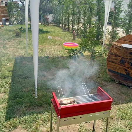 The accommodation includes an equipped kitchen, as well as an outdoor dining area for self-catering. The kitchen also offers an electric kettle, a refrigerator, and kitchenware.